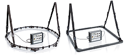 Support de sondes FEREX : Pour inspecter les grandes surfaces, les sondes FEREX peuvent être montés sur des supports multisondes. Ces systèmes peuvent être portés à la main ou bien montés sur un chariot.